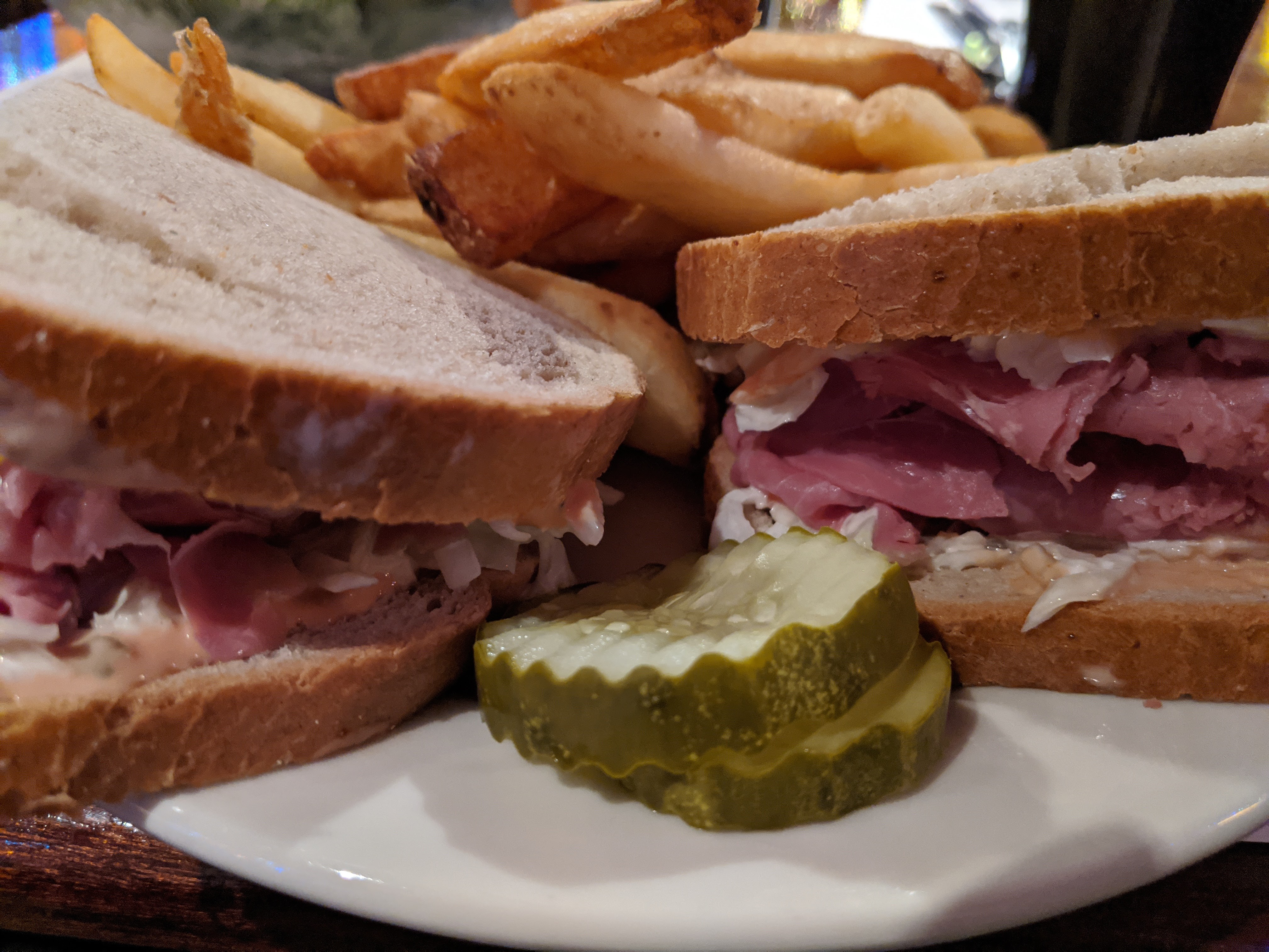 We ended up at the Irish Pub and Inn for dinner. The pub had lots of great reviews and an interesting menu. As an appetizer, we tried the fried raviolis. They weren’t bad! The teaser salad was fresh and the wedges that came with my sandwich were thick and delicious. Of course, we each had a tall glass of Guinness and enjoyed the decorative lights around the bar.