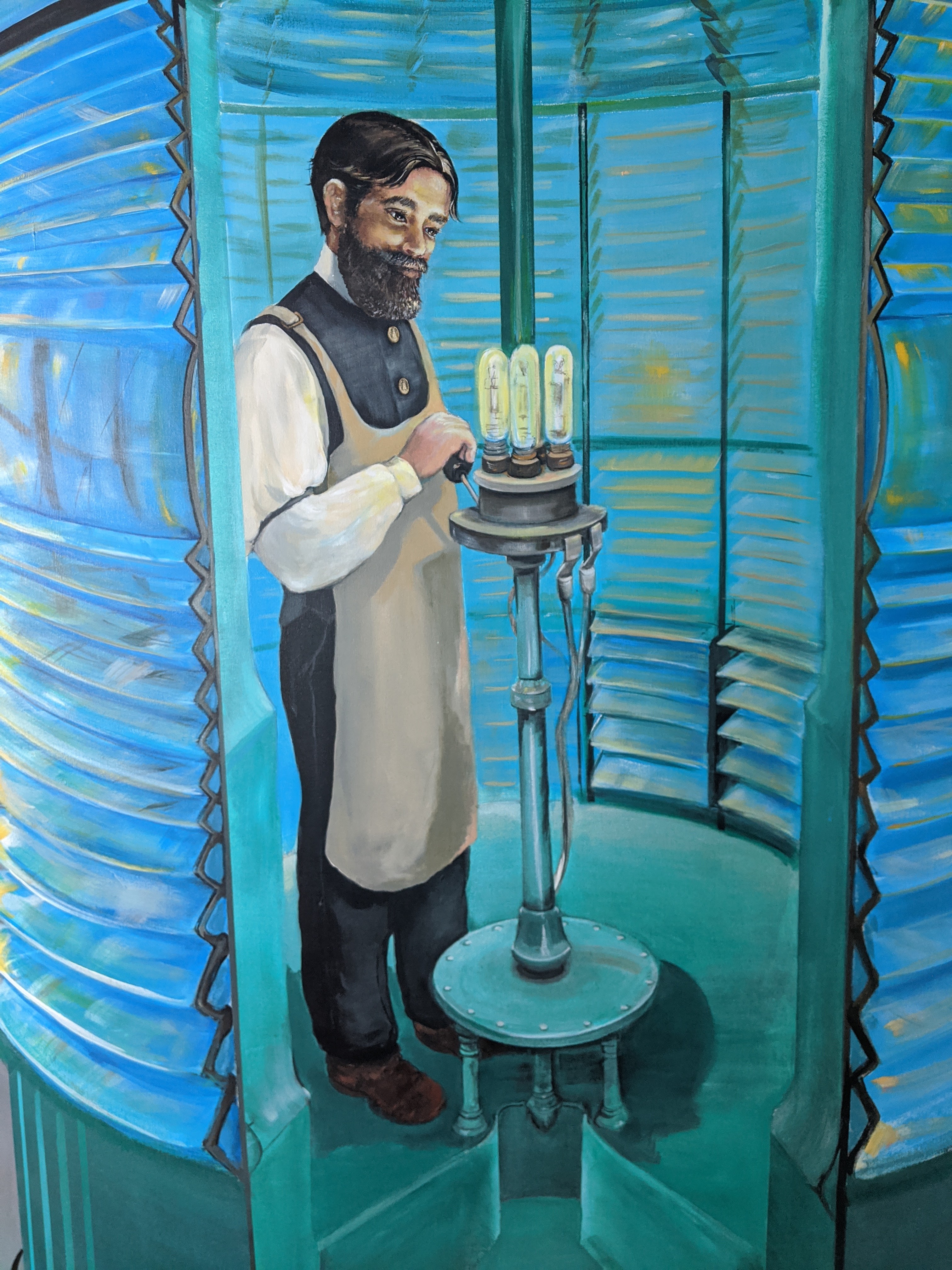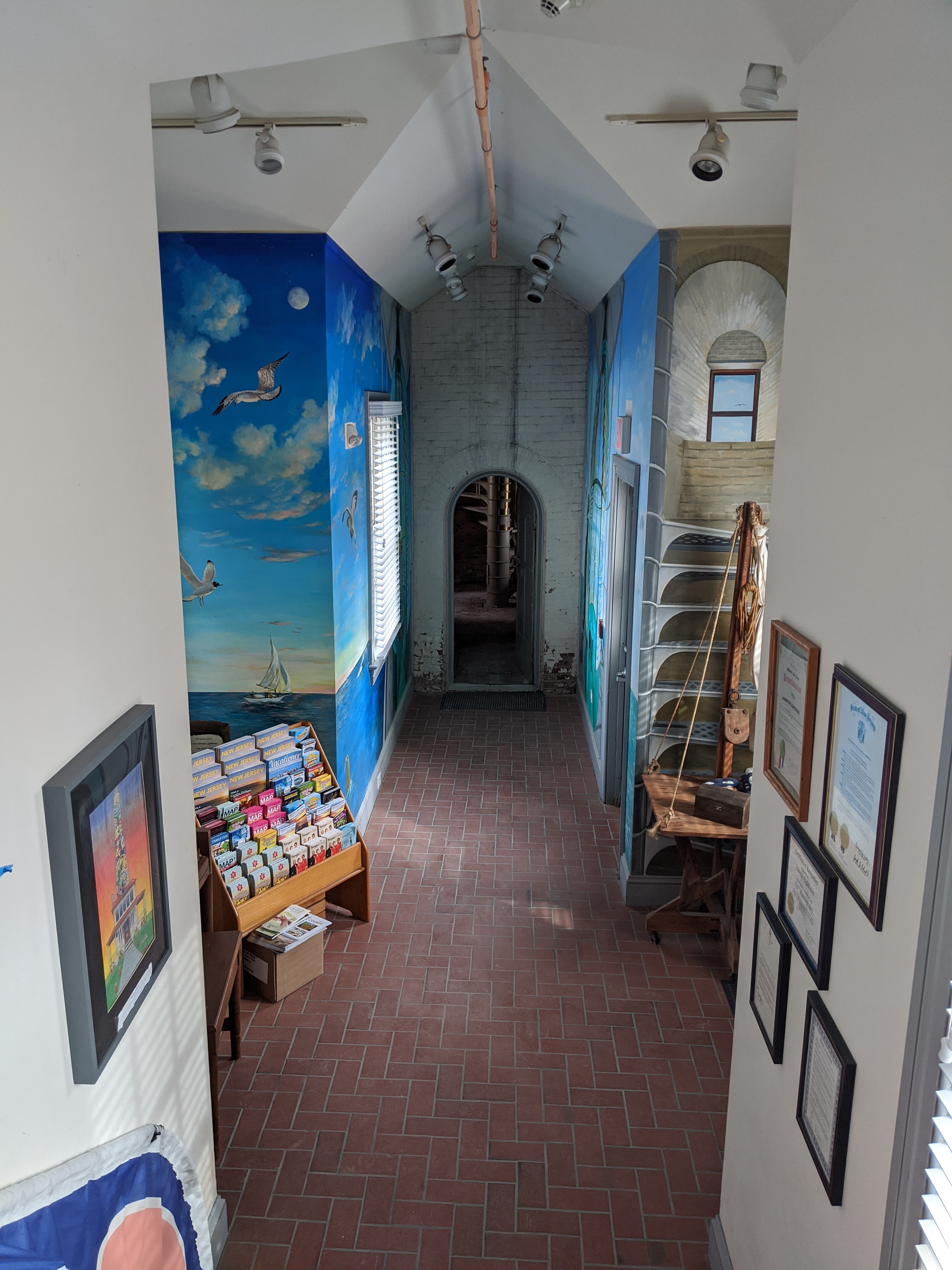 There is a gorgeous mural in the main area of the light house. The woman behind the desk is kind and has been there for more years than we have been alive! The guide is at the top so we started our climb. It was a decent distance all the way to the top with windows every so often so we could stop and take a look at the city from all different heights. They began building this lighthouse in 1855. It has been used in the past but is now just a fun discovery for travelers and light house enthusiasts alike. The staff was so amazing, then lovely man we met at the top had also been volunteering for many years and really loved doing it. I enjoyed listening to his stories and learning about the lighthouse. We were able to walk around outside and got some really nice pictures of the city from different angles.